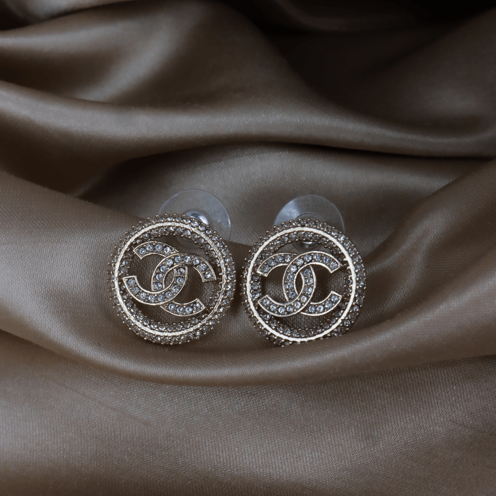 CHANEL 滿鑽圓框 CC Logo 耳環 |2020年款 未使用級美品 附原盒 - Vintasy