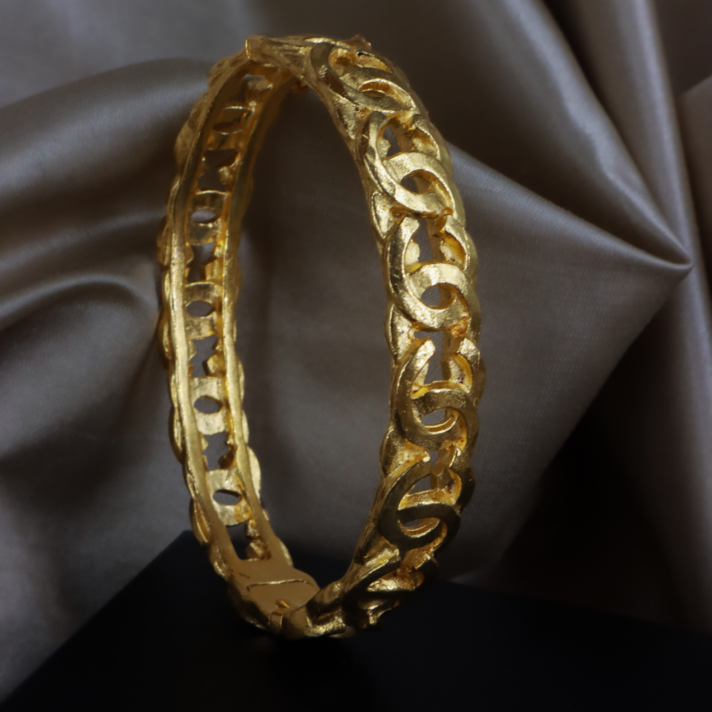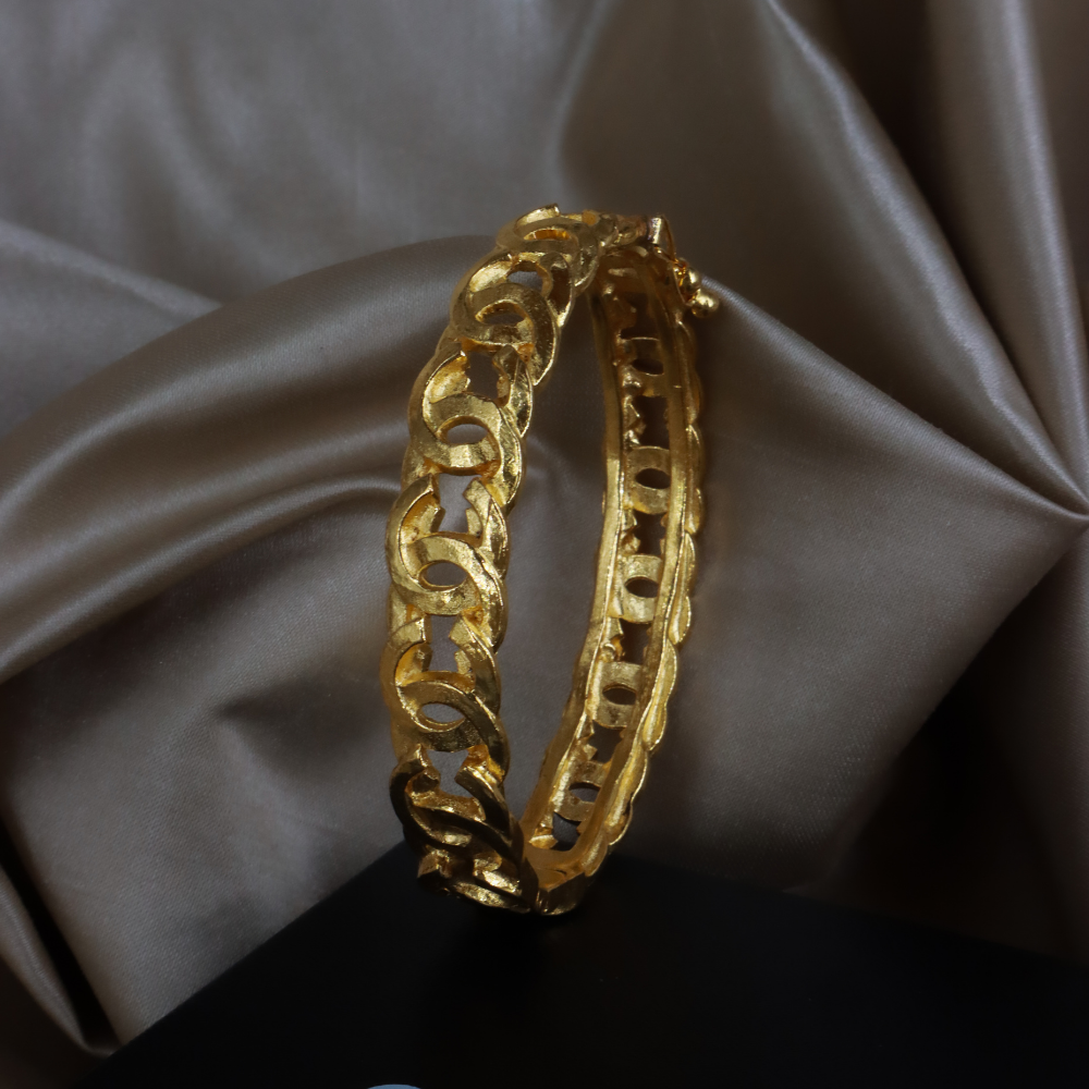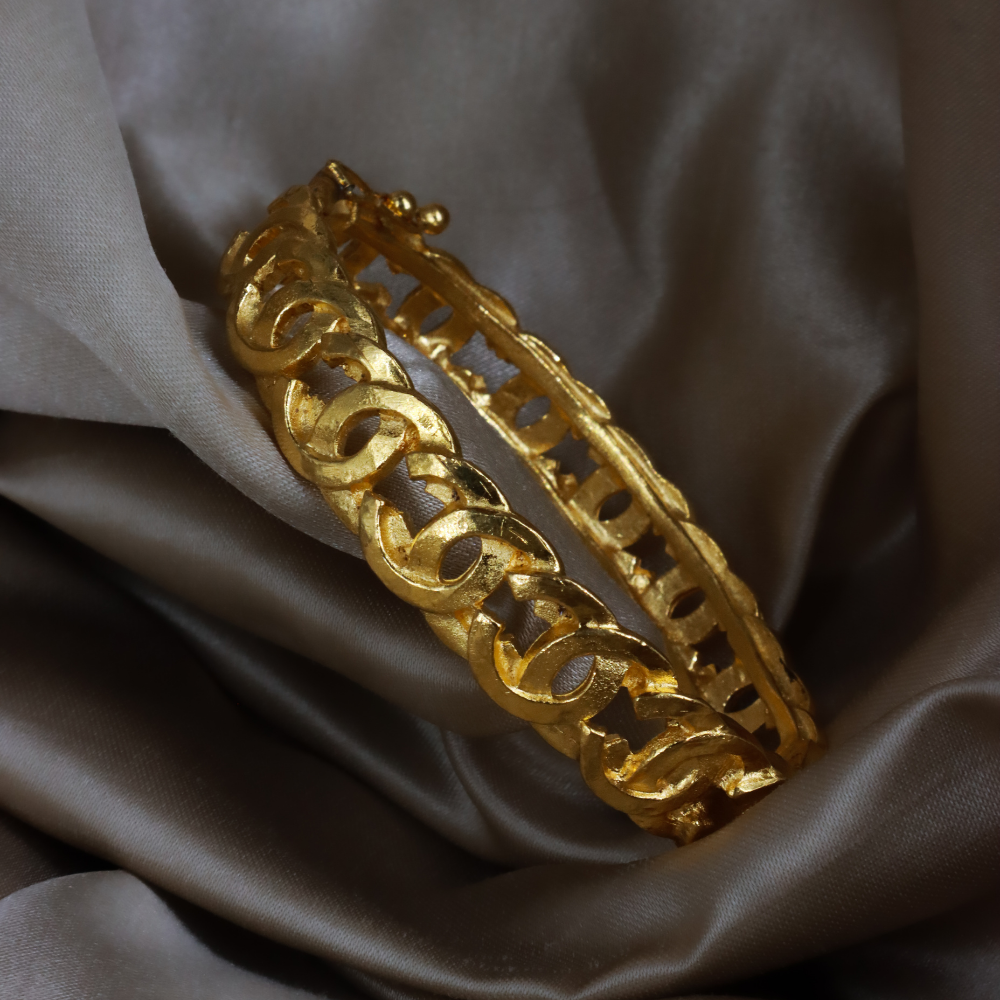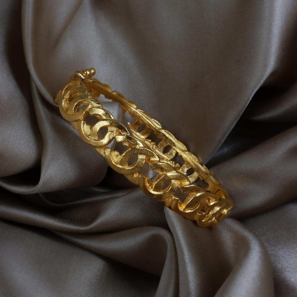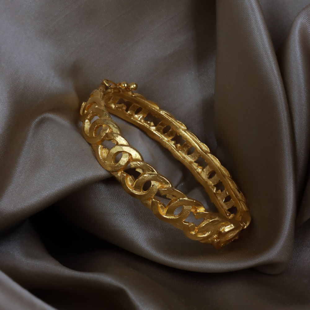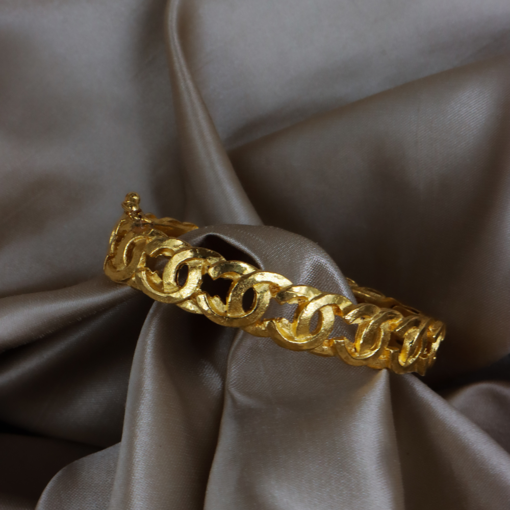 Chanel 經典粗鏈環設計,金色鍍層厚實鏈條組成手環,中間穿插雙 C Logo 圖案,附原品牌黑盒,霸氣又優雅。