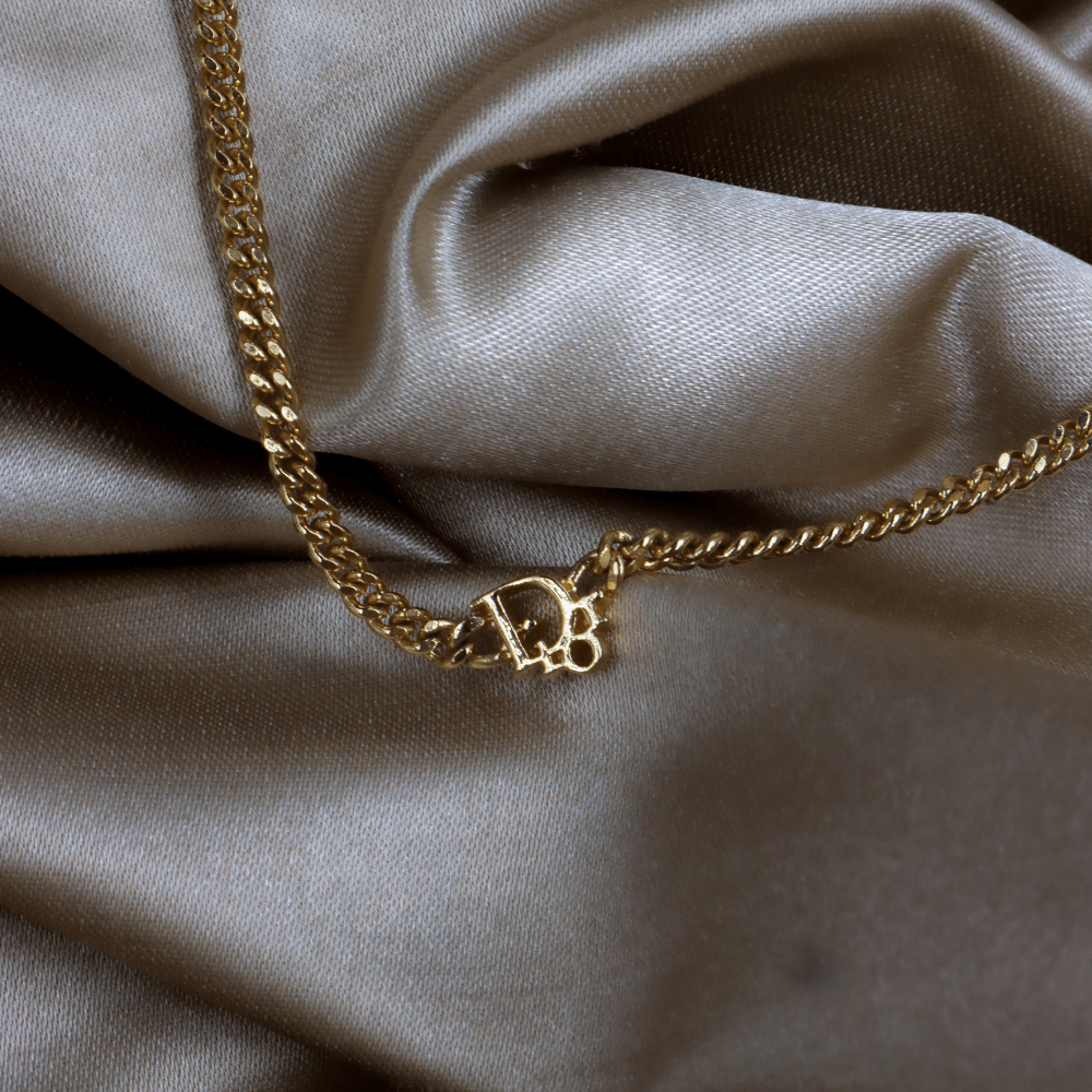 CHRISTIAN DIOR 極簡金色Logo項鏈 |1990年代極簡奢華 - Vintasy項鏈