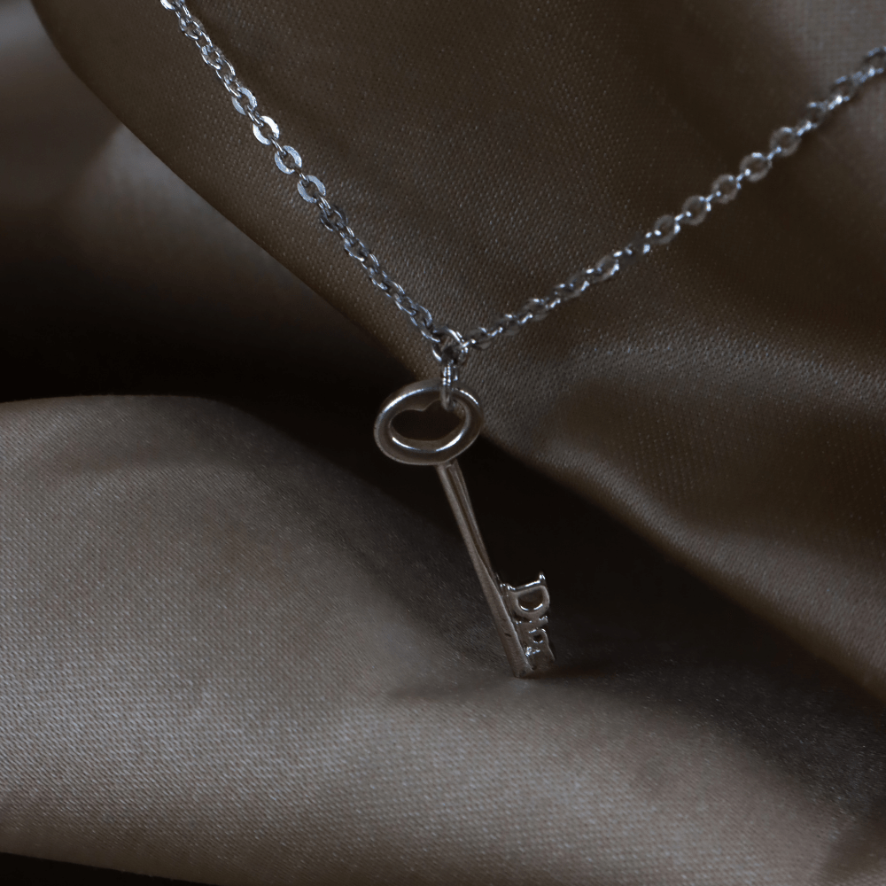 CHRISTIAN DIOR 銀色鑰匙Logo吊墜頸鏈 |未使用品 |2000年代必備產品 - Vintasy項鏈