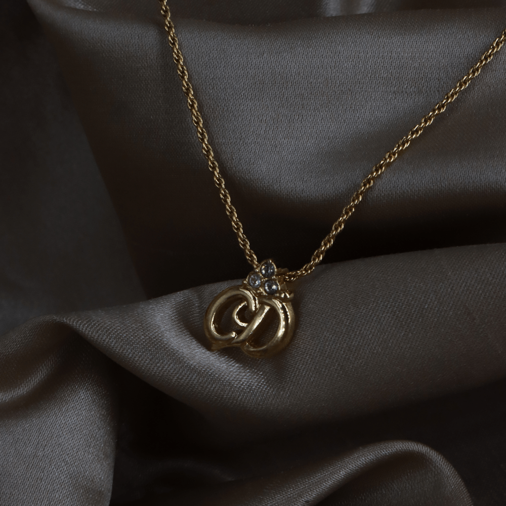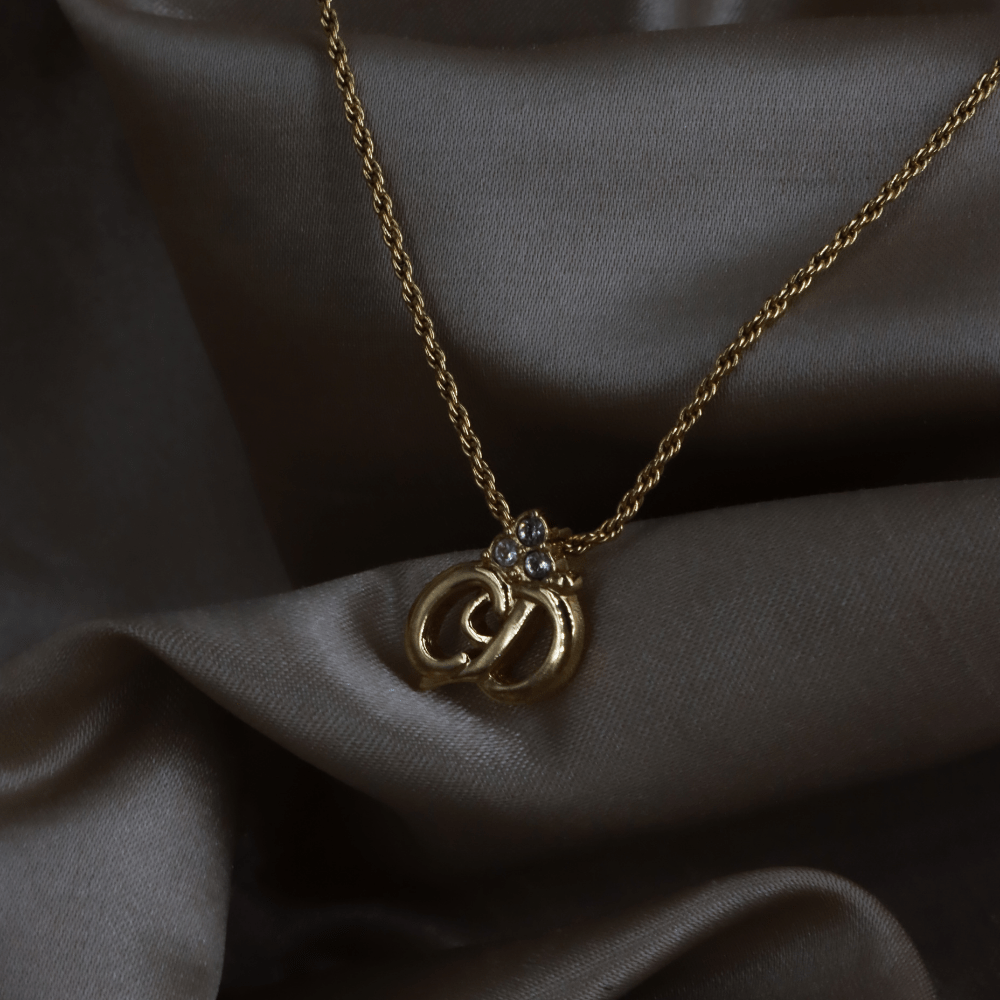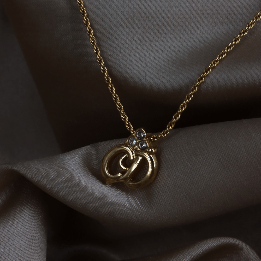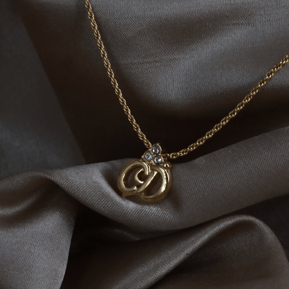 CHRISTIAN DIOR 金色立體CD水晶吊墜項鏈 - Vintasy項鏈