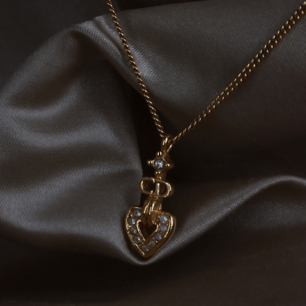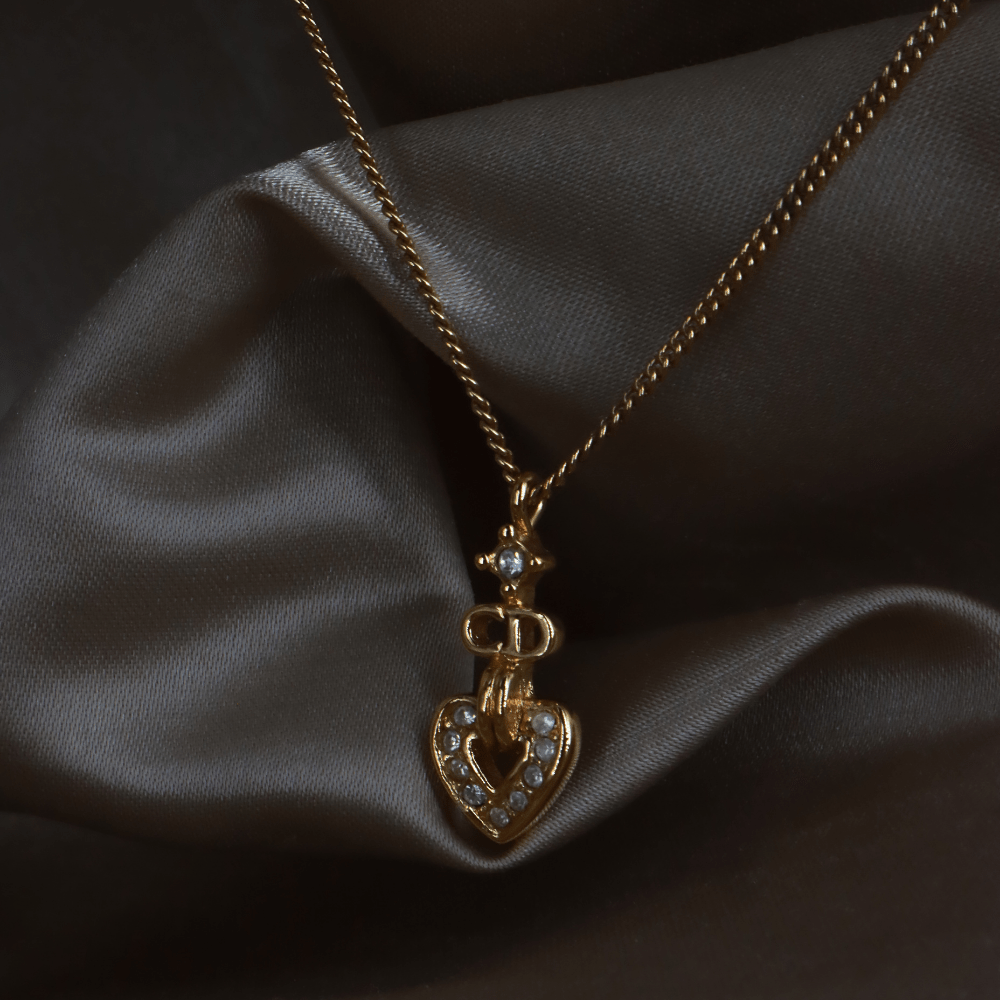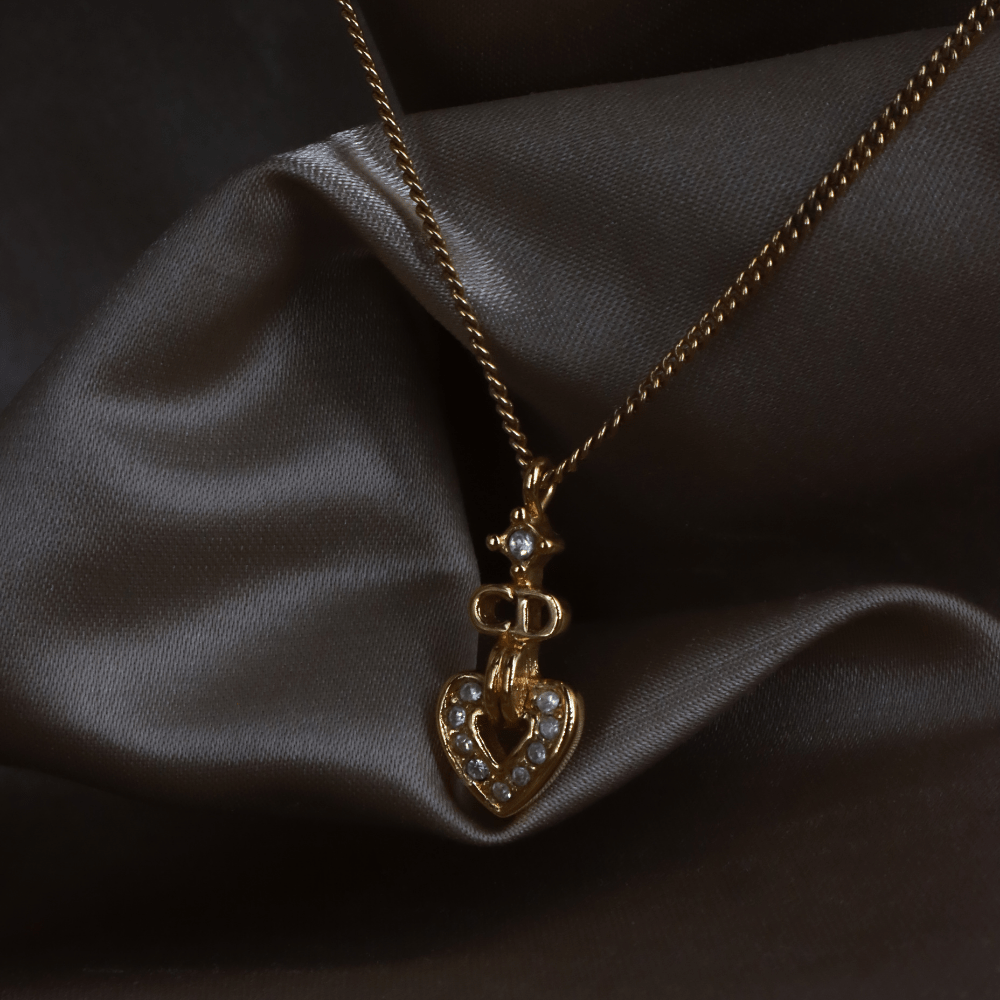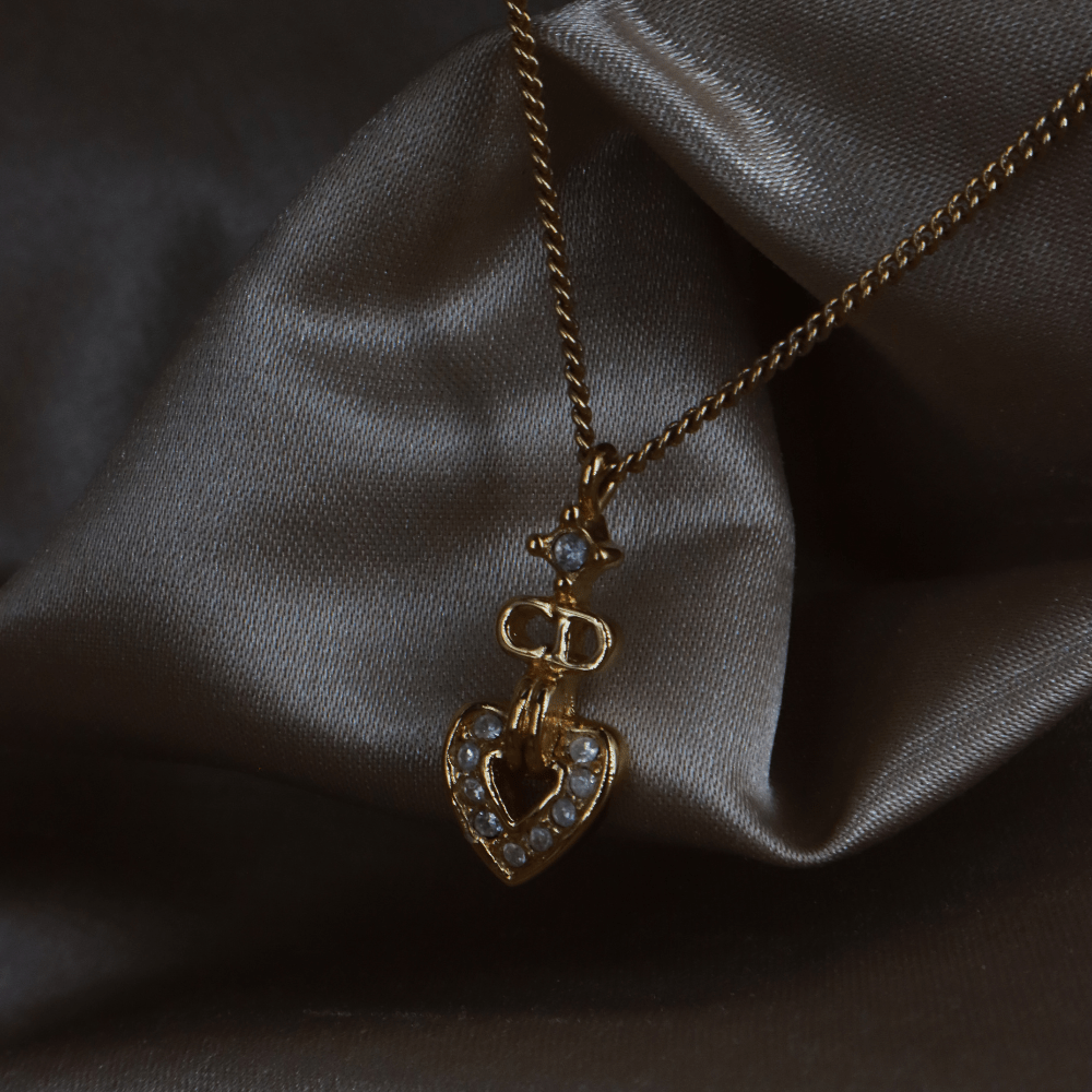 CHRISTIAN DIOR 金色CD水晶愛心星墜飾項鏈 - Vintasy項鏈