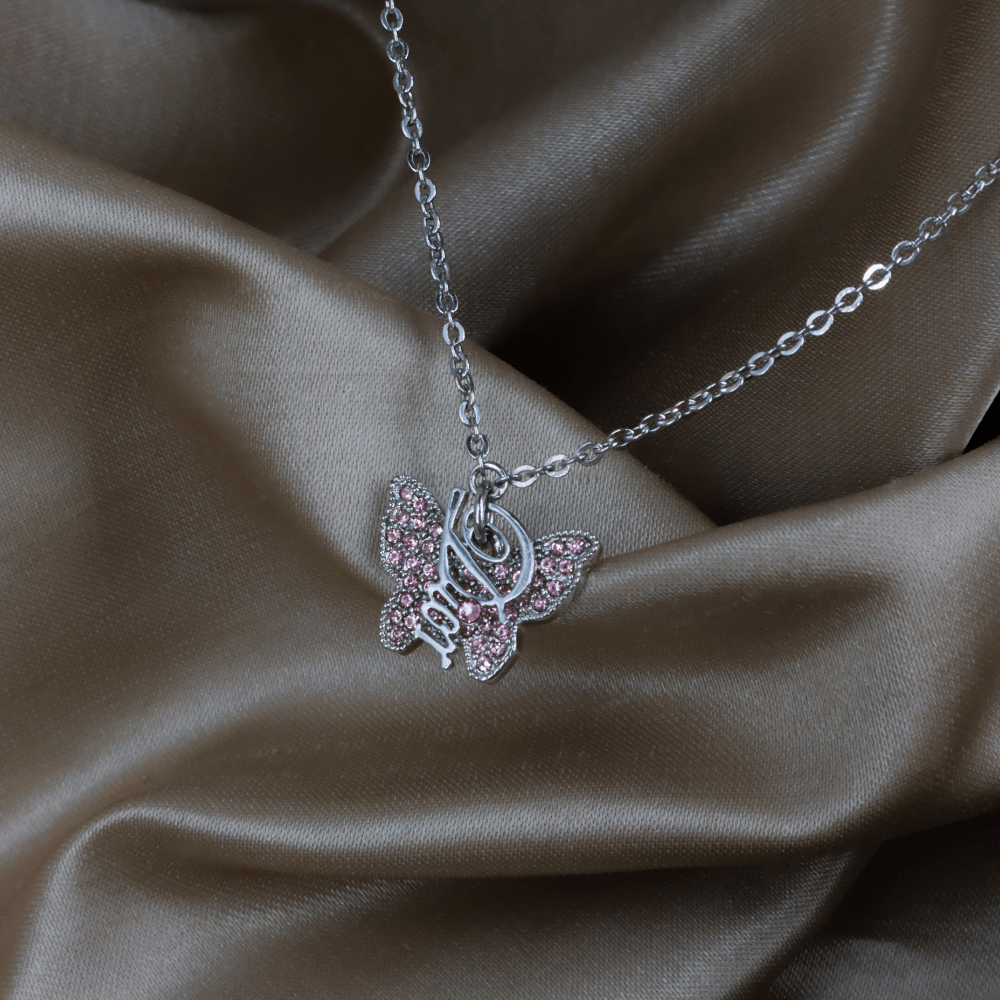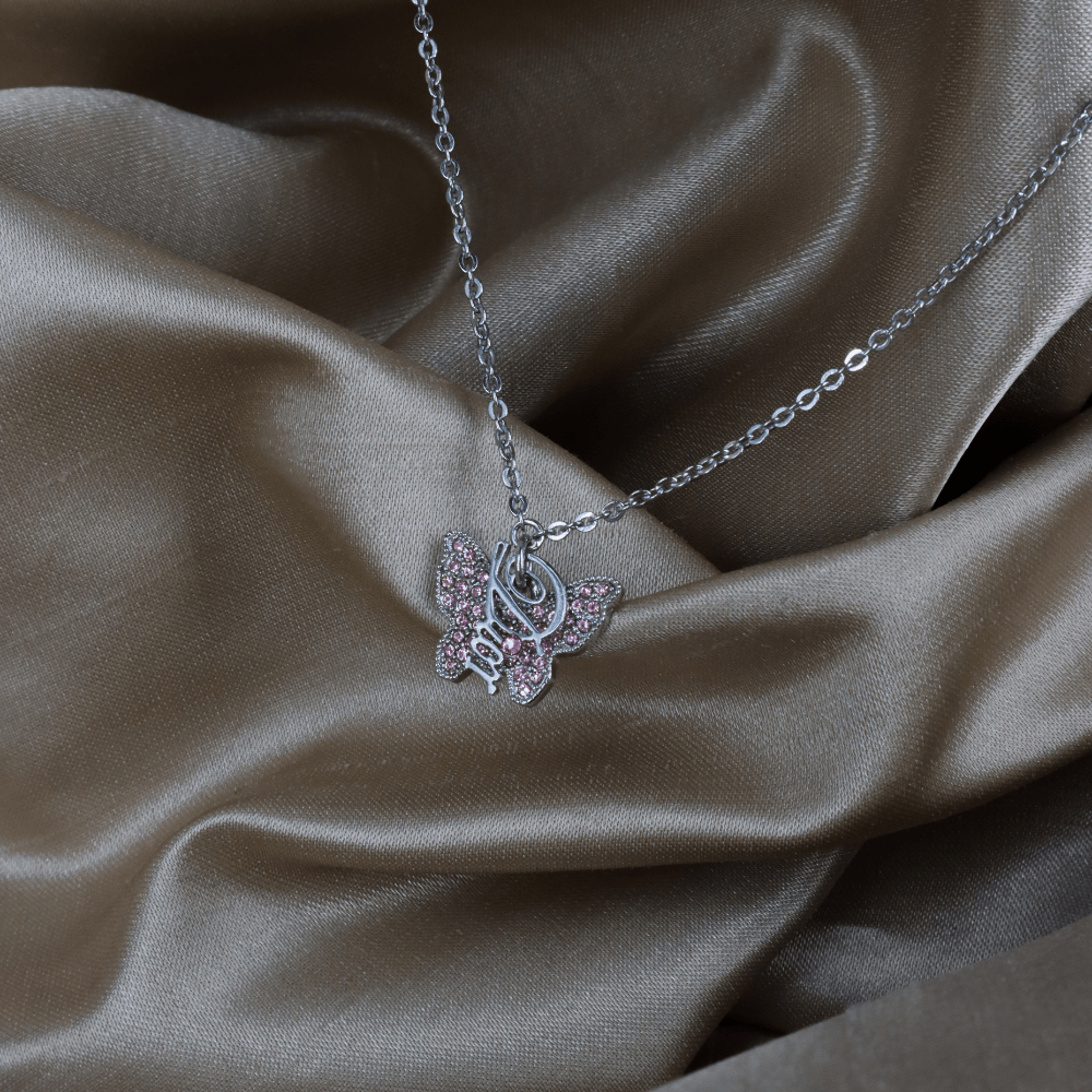 CHRISTIAN DIOR 銀色粉紅水晶蝴蝶Logo吊墜項鏈|未使用美品 |2000年代 - Vintasy