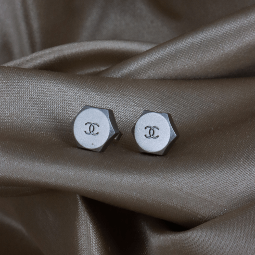 CHANEL 銀色六角螺絲造型雙C耳釘|1999年款式 - Vintasy