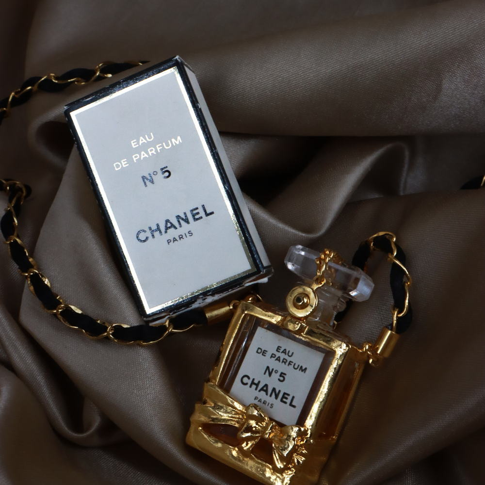 Chanel N°5 香水瓶造型金色吊墜頸鏈 | 稀品金色珍品 附兩款香水! - Vintasy