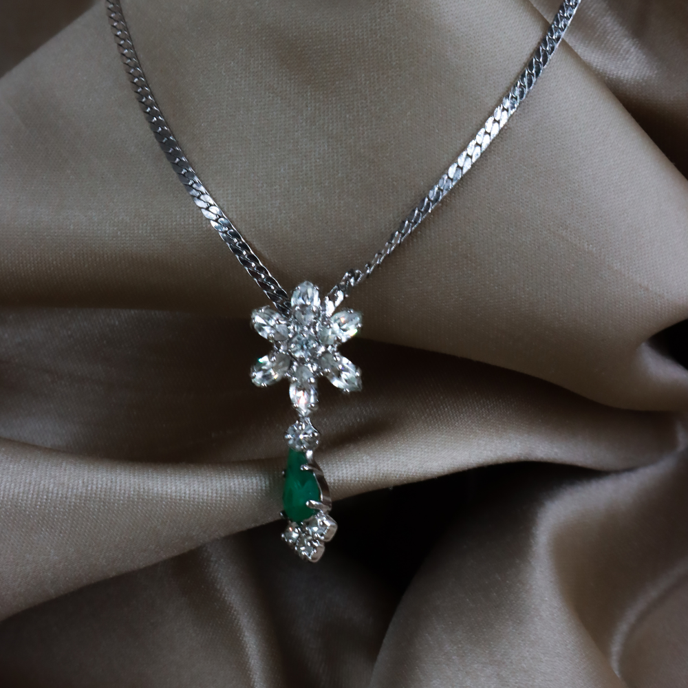 CHRISTIAN DIOR 雪花水鑽拼祖母綠吊墜頸鏈
