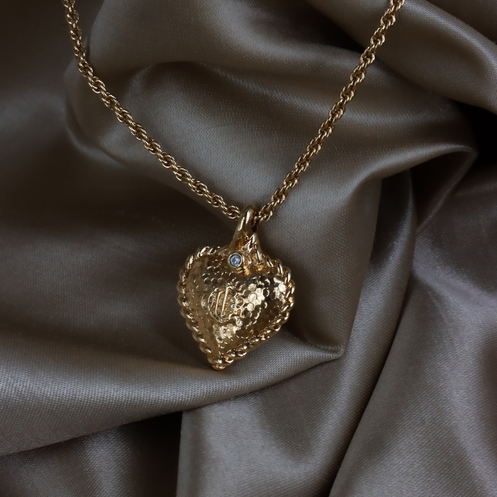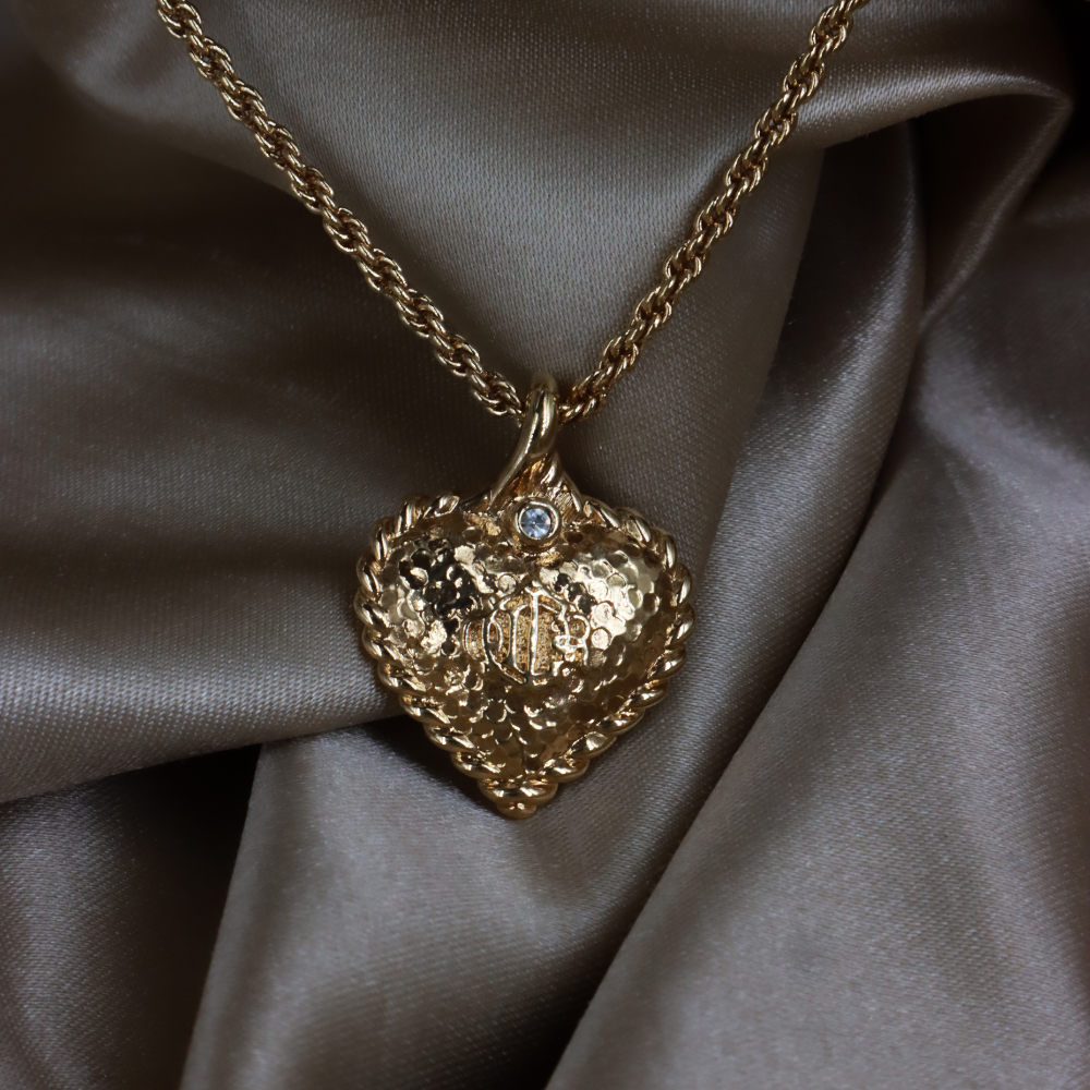 CHRISTIAN DIOR 絕版馬車復古金色錘紋愛心吊墜頸鏈